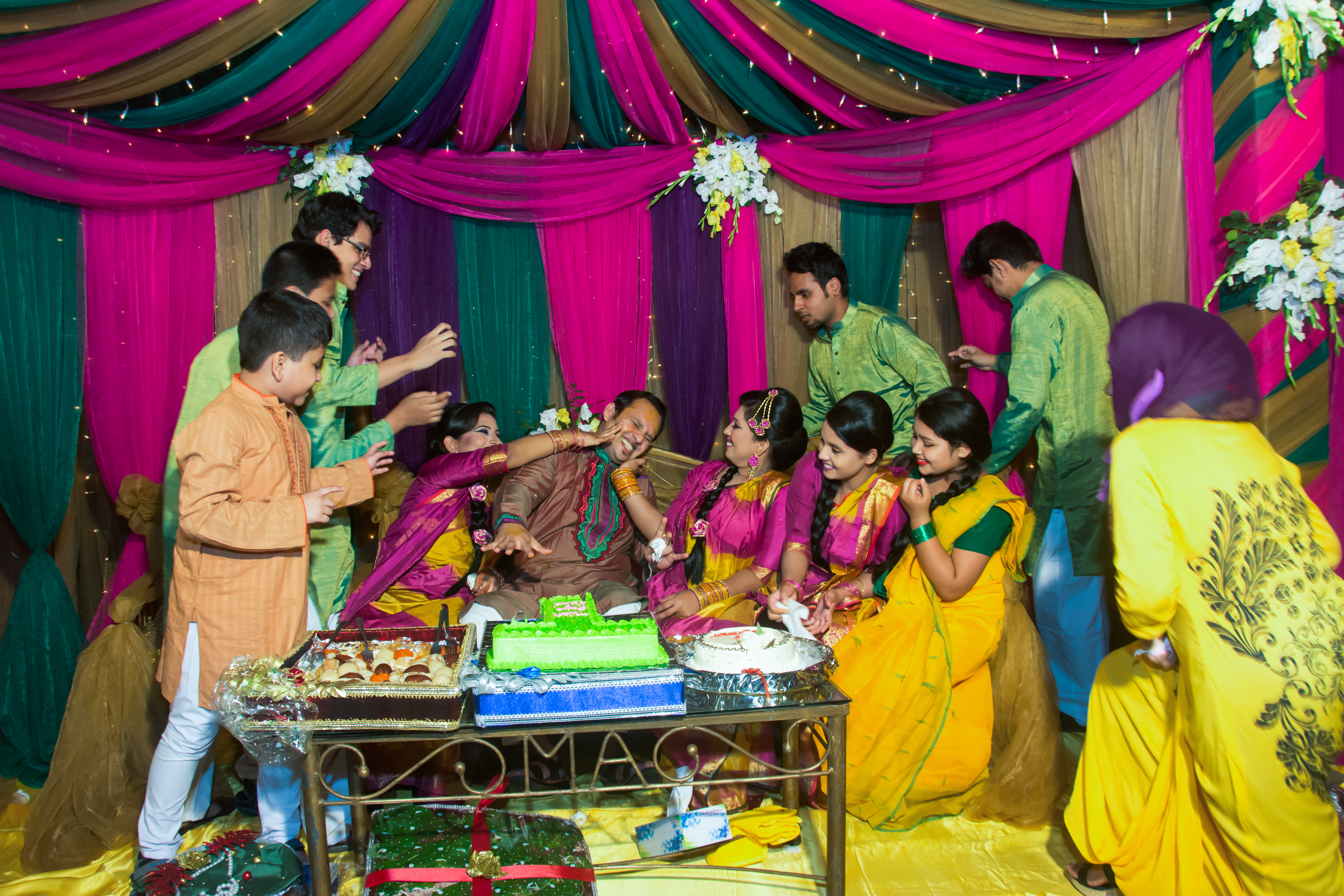 As the ceremonies drew closer, so were the preparations being put into it. The wifey with my cousins and my mom had done shopping and other related works. At these testing times in the economy, most families go for a grandeur “gaye holud” jointly and it becomes a massive ceremony in itself. However, we followed no such practice. We had the ‘body turmeric’ ceremony on our own in a small lake side restaurant. After gaining much awaited approval of father, my brothers and brothers from other mothers were busy preparing for the event specially the singing and the dancing performances. The “gaye holud” was a lively event and a small get together of our dearest kins.