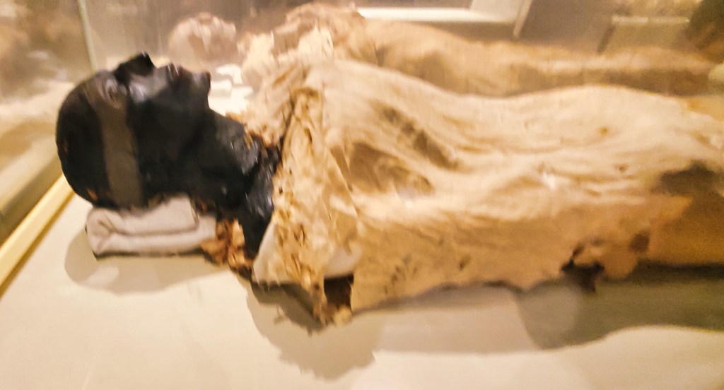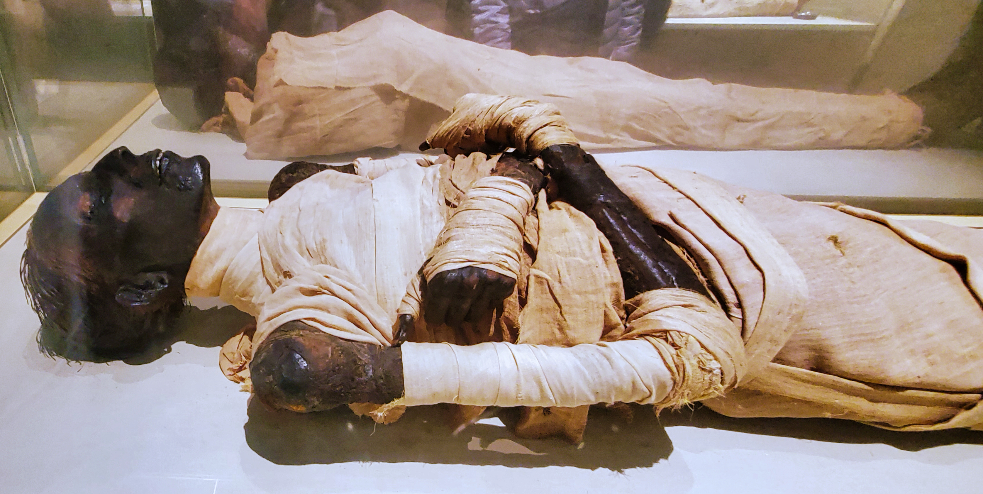 The mummification process was focused on the religious aspect of Egypt. The concept of death is highly regarded in ancient Egypt and for the pharaohs, it was viewed as a way to join the Gods. The ancient Egyptians used the mummification process to prepare their dead for the afterlife. The process involved the use of special tools and techniques for several days so that all the moisture is removed from the body leaving only a dried corpse and special priests would treat and wrap the body with a linen cloth and put within his or her grave with selected artefacts and a copy of a book of the dead which held many enchantments and protection spells. The mummies are hard to decay and can be viewed in the Egyptian Museum Mummy Room at any time.