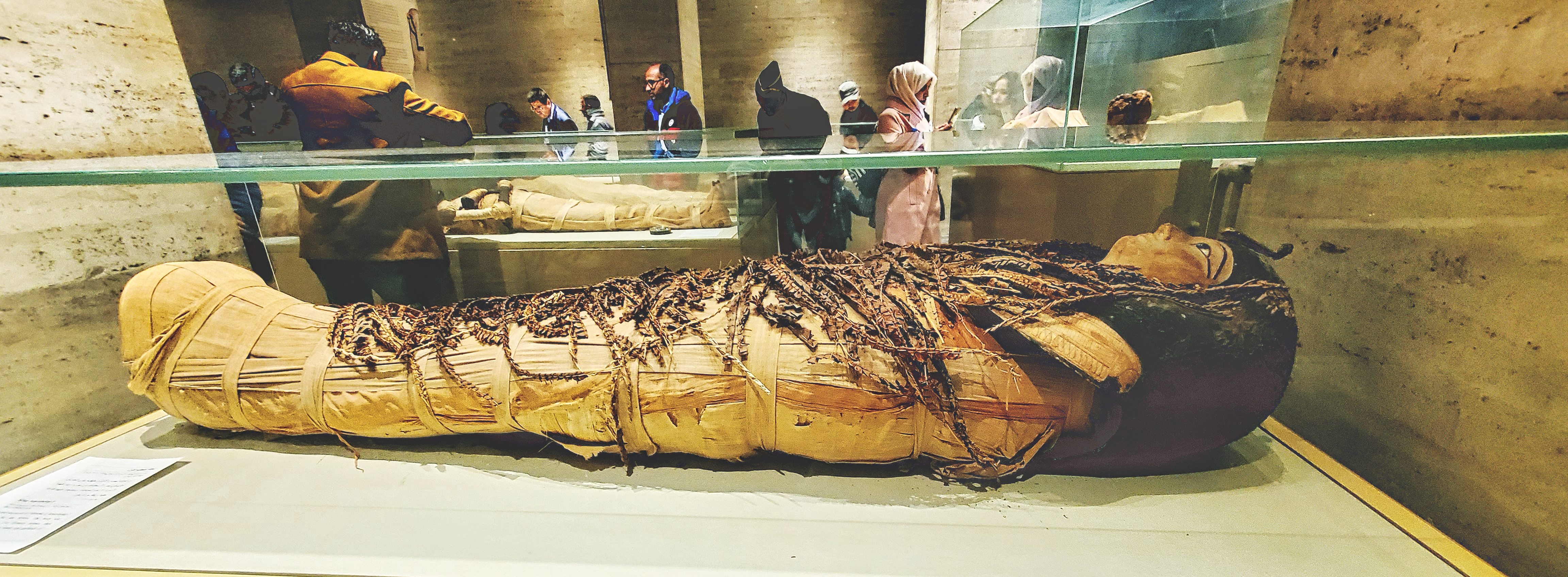 Considered the crown jewel of the museum, the Royal Mummies Hall is specially designed to display the mummies of the ancient Kings and Queens of Egypt. The design aims to give the visitor the feeling of strolling down the Valley of The Kings, where most of these mummies were originally resting. The hall includes 20 Royal mummies, 18 kings and 2 Queens, from the 17th until the 20th dynasty. The most famous mummies are Hatshepsut (Maatkare), Thutmose III and Seqenenre Taa II.