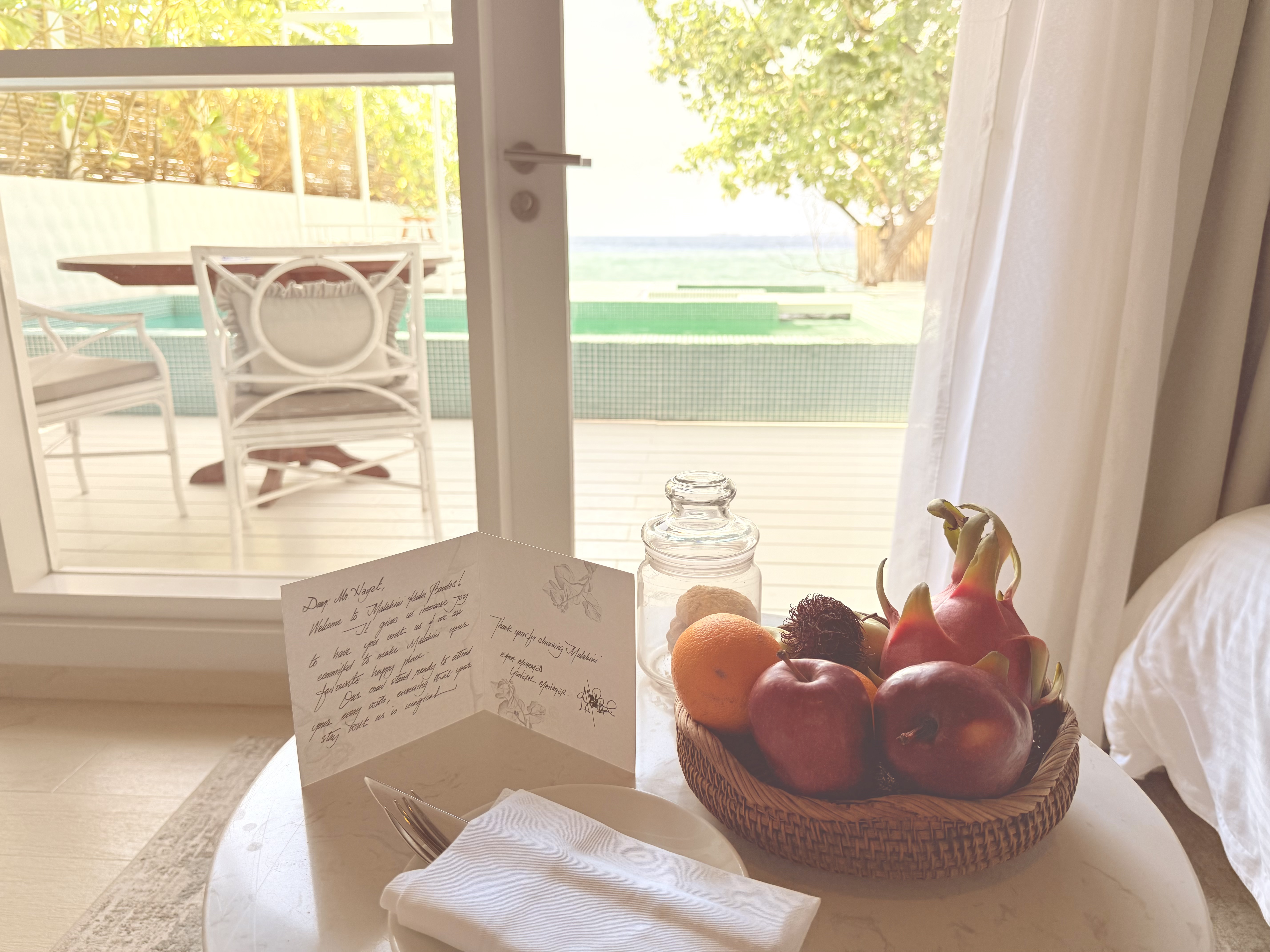 Beach villas are typically cheaper but equally beautiful in my opinion. They are also more family (especially toddler) friendly and give direct access to the beach. Water villas are romantic and epic so this is a no brainer if you have the opportunity to stay in one. I think this is what makes the stay just a little more special. In terms of cost, the water villas usually cost a lot more so it is another thing to consider. For 7 days in the Maldives, 5 days in beach villa and 2 days in water villa are perfect. At Malahini we stayed in the Sunrise Pool Villa. The private pool is something I have experienced in the past. The best was in Bali, Indonesia and you can see the photos here. Some of the photos from our room is given below.