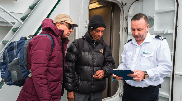 Boarding was smooth as we trickled in one by one into our new home. Finding our rooms fresh and tidy. Gathered later in the lounge we were introduced to our expedition team and the first officer.