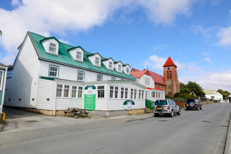 Meanwhile, the rest of us immersed ourselves in the town’s history (and souvenir stores!). We strolled along the foreshore, admiring the quaint British inspired architecture, the iconic local land rovers driving by, and the shipwrecks that dotted the coast. We visited numerous monuments such as the ‘Whalebone Arch’, which was constructed in 1933 from the jawbones of two blue whales to honor the centenary of continuous British administration in the Falkland Islands. We also viewed the Christ Church Cathedral, which is the southernmost Anglican cathedral in the world; the Saint Mary’s Church, and the Falklands War memorial. We gained a deeper insight into not only the famous war, but local culture and history at the Falkland Islands Museum, which hosted an impressive display of artifacts and exhibits.