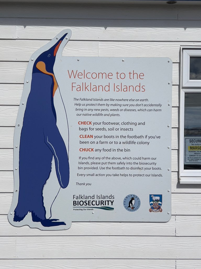 In the morning, we had to go through several mandatory briefings. The IAATO (International Association of Antarctic Tour Operators) provided guidelines on how to behave when visiting Antarctica. The rules for the Falklands and South Georgia are similar, so it was a good introduction to understanding how to respectfully move on land. We also got a brief overview of biosecurity measures to prevent the introduction of alien species into new areas, and to help combat avian flu, which continues to impact wildlife populations—not just birds.