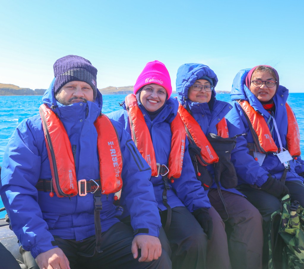 Next, we focused on the practical application of these guidelines with a biosecurity check. We brought all our outdoor gear for inspection by the expedition team. Cleaning any equipment, where necessary, is crucial to prevent the introduction of alien species, which could have catastrophic consequences for the unique, endemic wildlife and the broader ecosystem.