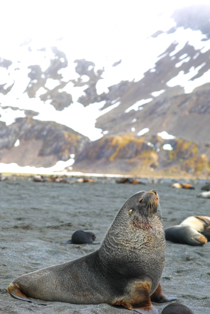 As far as Friday 13th go we have seen worse. We woke up to stunning sunshine as we sailed our way in Husvik harbour. The Scenery was simply breathtaking, the aggressive mountains gave way to lush plains teaming with a healthy population of seals and penguins. The rundown whaling station with its many buildings contrasted with its vibrant ocre color resonating the tragedies that occurred within this bay where thousands upon thousands of whales were processed during the whaling era of South Georgia.
