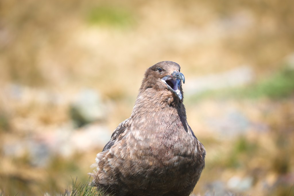 Along the way, some skuas had made their nests, but we received good advice on how to avoid the young skuas and enjoyed watching them start their journey in life. This skua attacked me thinking I was going to take away its chicks. I deviated from our assigned path a bit and didnt see the skua nest among the tussock grass. Ferociously came towards me and as I fell towards the ground, I took the pictures.